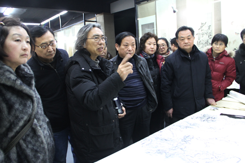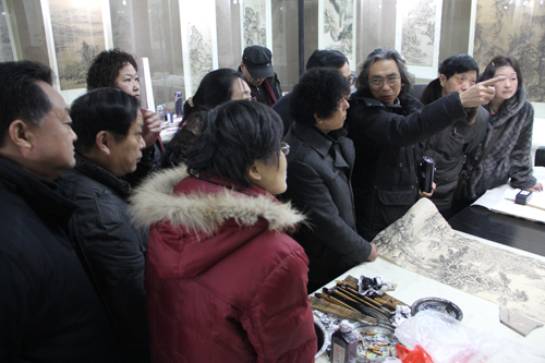 课后,张培武为学员们范画,讲解了树、石的画法,并一一点评学员们的临摹作品。