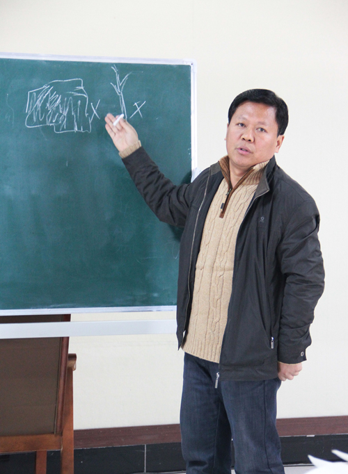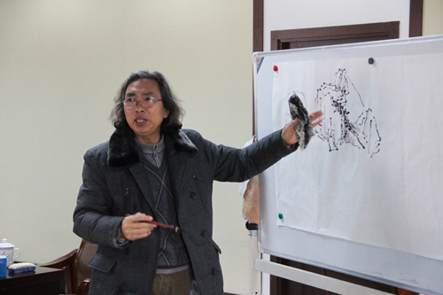 博士为中国画创作班授课,讲授了临摹的方法与程序。