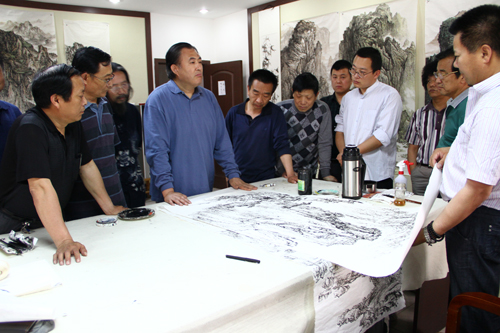 2012年5月9日下午,北京凤凰岭美术馆常务副馆长韩国栋为中国画创作班学员授课,一一点评了学员们的创作作品。