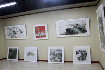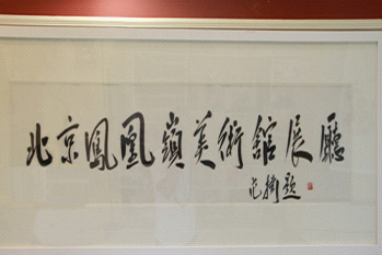 此展厅是由北京凤凰岭文化传播有限公司经营的对外交流平台,重新装修后焕然一新。紫罗兰色的墙体配奶白色的画框及精选出的15幅驻馆画家的作品,使得画廊褶褶生辉。由北京凤凰岭书院导师范扬先生题写的“北京凤凰岭展厅”更是洋溢着古朴高洁的文人气息。环视完厅内的布置,张红军董事长对装修情况表示非常满意,组织公司人员开会并对会后的工作作了重要指示。