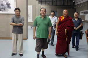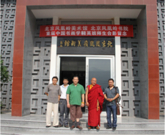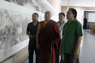 2012年6月8日下午,中国藏教唐卡大师洛桑三旦一行来北京凤凰岭美术馆参观交流。唐卡大师对北京凤凰岭书院师生作品以及由北京凤凰岭美术馆住馆工作室画家创作的《京沪高铁揽胜图》和《西电浩歌》两幅巨幅长卷给予了高度评价。洛桑大师表示,唐卡与中国书法绘画都是我们中华民族传统文化的重要组成部分,希望以后加强文化交流,相互学习相互促进,共同弘扬我们民族传统文化。北京凤凰岭美术馆常务副馆长、凤凰岭书院教务长韩国栋,凤凰岭美术馆理论研究部主任、《中国凤凰美术》执行总编褚哲轮,一起陪同嘉宾参观了展厅和美术馆。