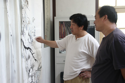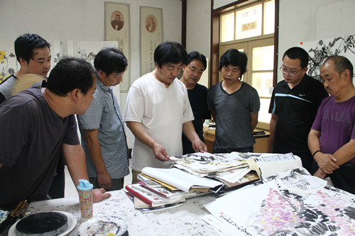 2012年7月25日下午,马硕山为北京凤凰岭美术馆中国画研究班学员详细点评了近期作品并给与肯定。