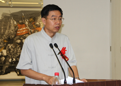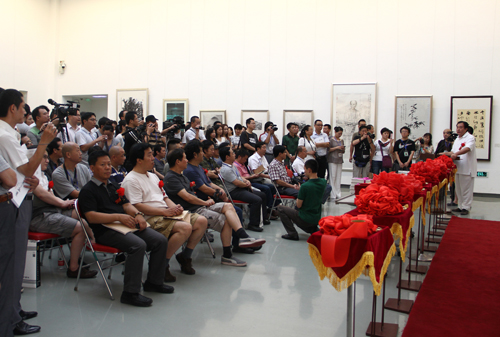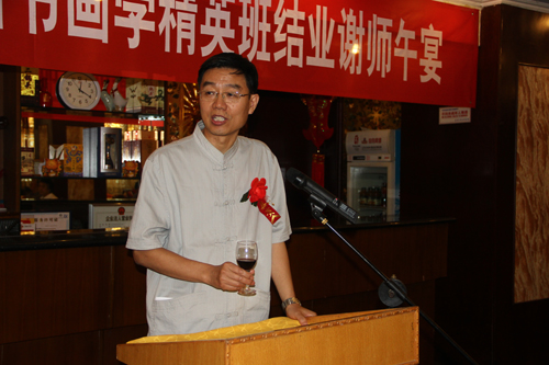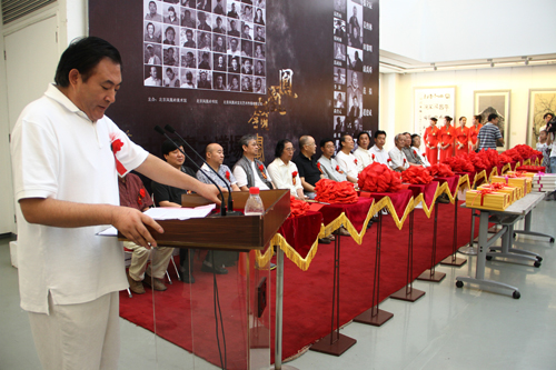 开幕式由北京凤凰岭美术馆常务副馆长、凤凰岭书院教务长韩国栋先生主持,韩国栋说:“北京凤凰岭书院首届中国书画学精英班自2010年9月30日开学至今已届两年了。当我们回顾与梳理书院近两年的教学时光,从心底间油然而生的是对中国优秀传统文化的愈加珍重、依恋与敬畏之情。两年来,书院取得了令人瞩目的教学成绩,而这些成绩浓缩与见证了先生们那卓越的学识、宽博的襟怀以及自觉的文化担当意识,演绎并引领着书院向中国正脉文化回归,向时代巅峰攀登的健硕身影与文化自信,并由此探索出了当代中国书画教学的新模式、新维度。”