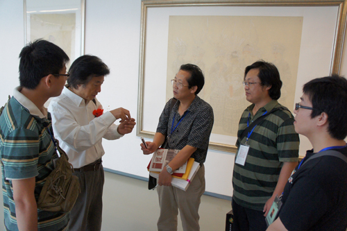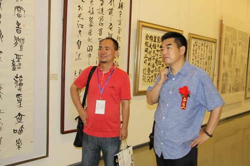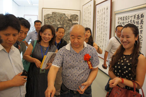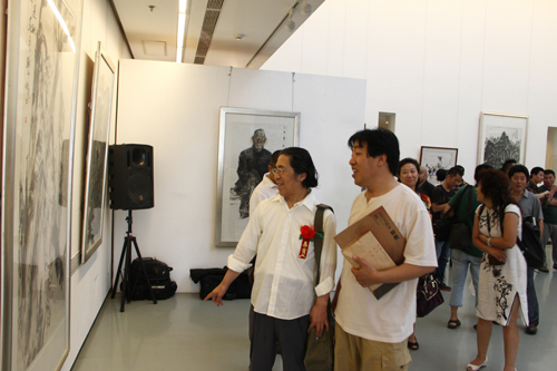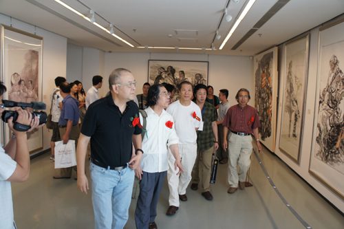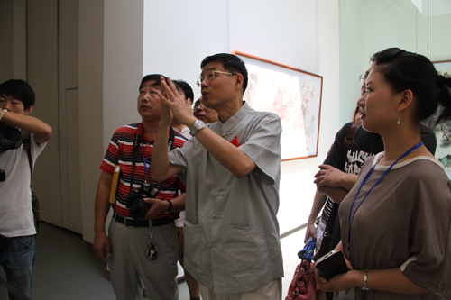 北京凤凰岭美术馆馆长张培武陪同龙瑞先生、刘曦林先生、程大利先生参观展览作品