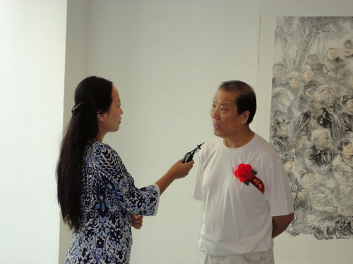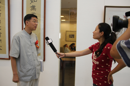 北京凤凰岭美术馆常务副馆长韩国栋接受新华社记者采访