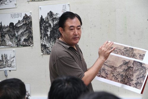 北京凤凰岭美术馆常务副馆长韩国栋为第三届中国画研究班学员讲授山水画的写生与创作。