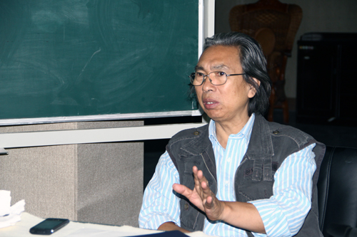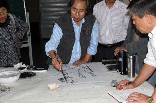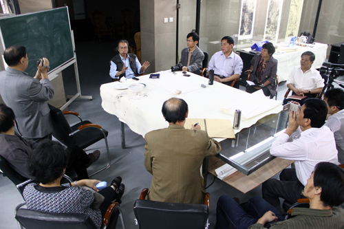 2012年9月19日上午,北京凤凰岭美术馆馆长张培武为第四届中国画研究班学员讲授临摹的理论知识。