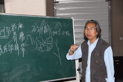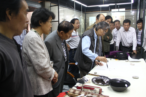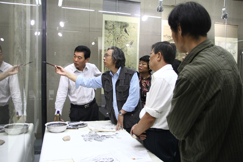 2012年9月20日上午9时,北京凤凰岭美术馆馆长张培武为中国画研究班学员上临摹课,讲授临摹要领。