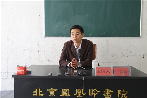 2012年10月10日下午14时,北京凤凰岭书院院长王鲁湘在书院教室为第二届中国书画学精英班学员授课,解读院训与艺术的起源发展。