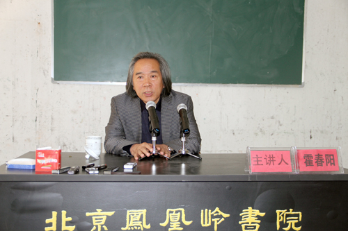 2012年10月12日上午10时,北京凤凰岭书院中国书画学精英班花鸟工作室导师霍春阳先生在凤凰岭书院授课,剖析了当代中国美术界的现状及存在的问题。