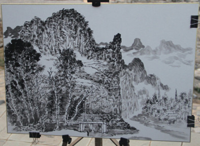 张馆长亲自示范并逐步讲解了如何观察自然万象,取景、山石结构、用笔用墨等的具体方法。张馆长说:“学习山水画,对景写生是必不可少的一个过程,生活是艺术的源泉,这是永远不容怀疑的真理。画者亲近自然,感悟自然,能夺自然之神韵,谓之真画,如若只求山石之形影犹如案头置盆景,非真画也。所以中国山水画写生不是以简单的再现为目的,而是强调作者与对象的互化而求心知。写生实为一种天人合一的再组、再造,是宏观性的天人交合的迹化。”