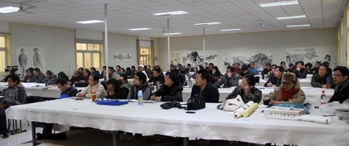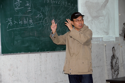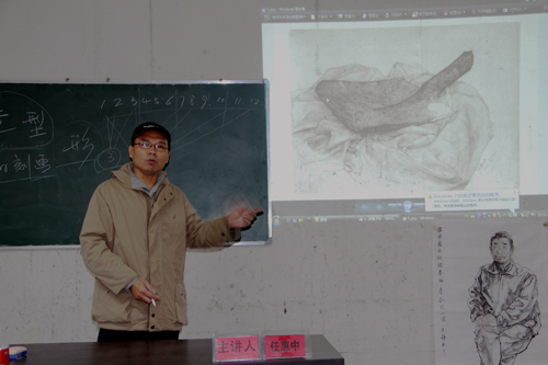 2012年11月3日上午10时,小雨迷蒙,乌云遮盖了天幕。北京凤凰岭书院刘大为工作室执行导师任惠中为书院第二届学员讲解了人物画的素描、速写与造型。