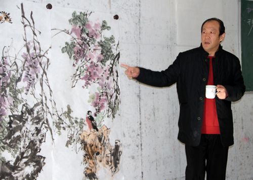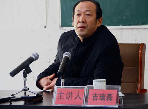 2012年11月5日上午10时,首都师范大学教授、硕士生导师吉瑞森为北京凤凰岭书院第二届中国书画学精英班学员主讲中国花鸟画的造型及自己的笔墨实践心得。