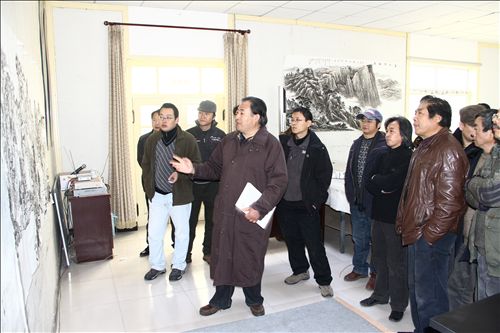 2012年11月7日上午,北京凤凰岭书院教务长韩国栋来到书院山水班教室,为学员们点评作品。