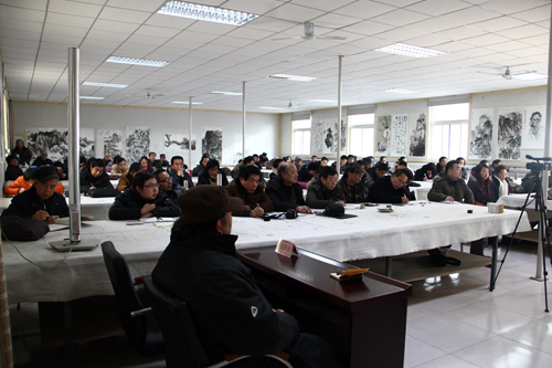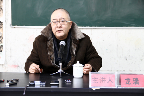 龙先生讲到:“我想借此机会多与大家沟通与交流。凤凰岭美术馆与凤凰岭书院长期致力于中国画的教学与研究,并经常邀请一些在社会上有成就的、在创作中有思考的、对中国画有见地的名家前来授课,凤凰岭书院教学上还是有其自身的特色。从凤凰岭走出的学员在社会上有了一个良好的反响,认为我们在教学实践中注重了中国画本质的东西,许多同学感到在创作实践中受益匪浅。”