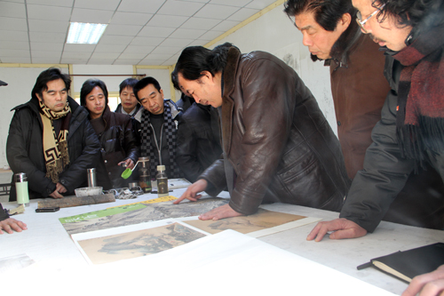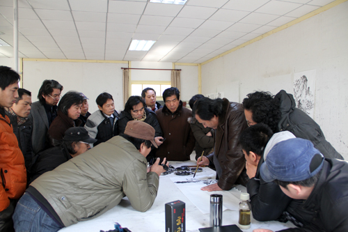 2013年1月10日上午10点,北京凤凰岭书院教务长韩国栋为书院山水班讲授临摹性创作方法与理念,参加听课的有龙瑞工作室、范扬工作室、程大利工作室及卢禹舜工作室的学员。