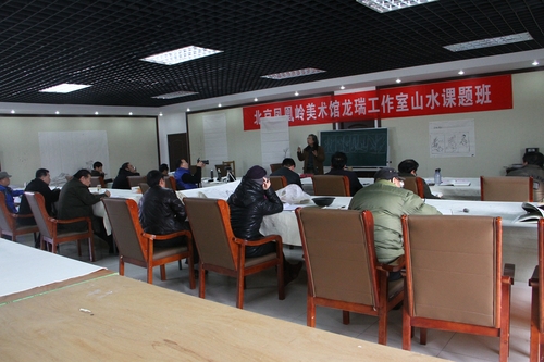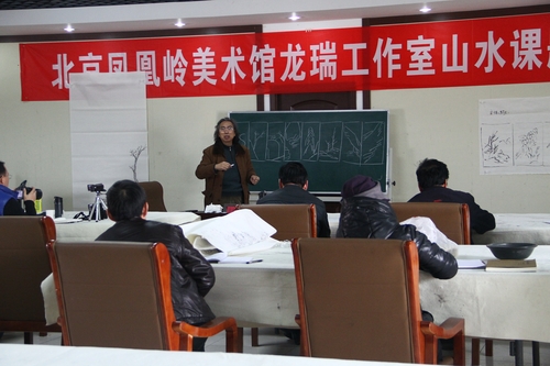 2013年3月20日下午,北京凤凰岭美术馆龙瑞工作室山水课题班执行导师张培武为学员讲解山水画创作。