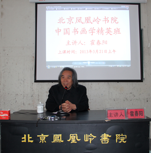 霍春阳先生开门见山地讲到:“当代中国 画家对于用笔的研究、理解、体验与古人相比还差距甚远。我们现在许多画没有境界的主要原因在于艺术语言方面的缺失以及文化或文质的缺失,中国画与西画的要求不一样,在技术方面区别于容纳着一个画家的修养、认知水平、体现的境界。解放以后及学院派的教育几乎把注意力均放在了解决造型问题上,走上了一条现实主义的道路,忽略了形象思维能力的培养,停留在状物及深入生活的阶段。”