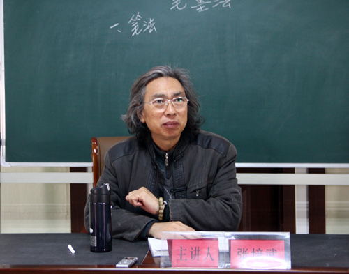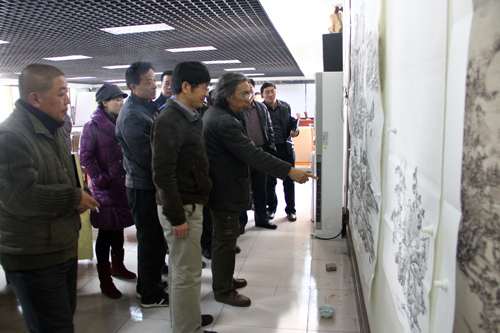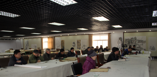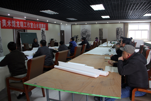 2013年3月26日上午9时,龙瑞工作室山水课题班执行导师张培武为课题班学员授课,讲解了中国画的基本笔法与墨法,同时点出画面创作中常出现的弊端。