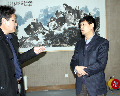 林阳总编接受凤凰岭美术馆理论部褚哲轮主任现场采访