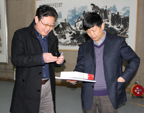 中国美术出版总社、人民美术出版社、连环画出版社总编辑林阳先生特意从百忙中抽空前来观摩汤立先生画展。林阳先生一一观览展出作品,不时与汤立先生进行交流讨论,称赞汤立大写意小画笔墨精到,大画有气势,用笔有力度。最后,林阳先生接受北京凤凰岭美术馆理论部主任褚哲伦专访,就提出的问题展开分析,畅谈了当今中国画发展态势。
