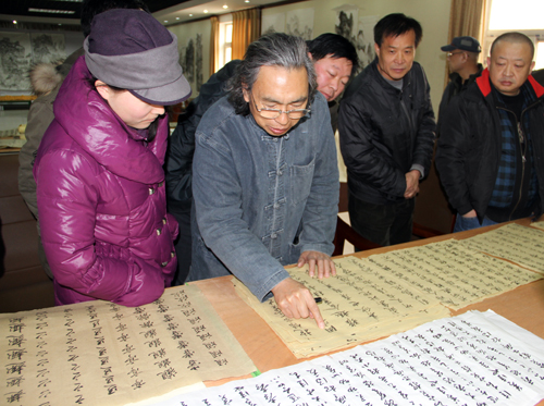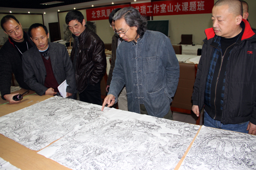 2013年3月29日下午,龙瑞课题班执行导师张培武特意从宝贵时间中抽空前来点评学员们这一段时间的临摹创作作品。