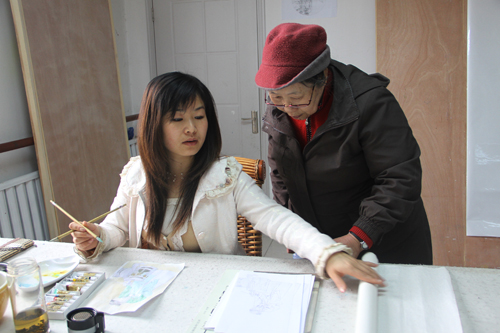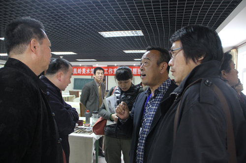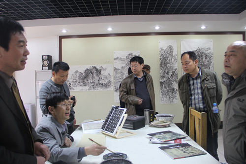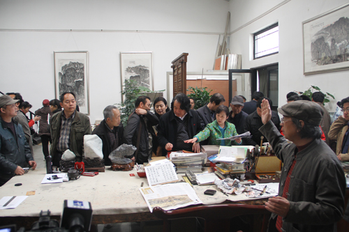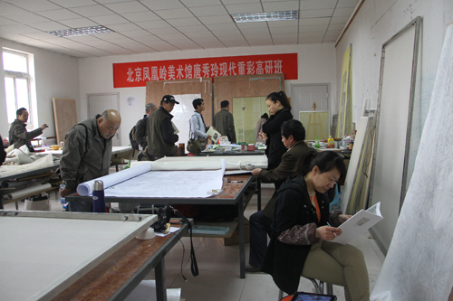 2013年4月22日下午,导师龙瑞先生带领中央电视台书画频道短期班学员一行到凤凰岭风景区写生采风,领略和描绘了西山的壮丽与雄浑,学员一行来到凤凰岭脚下的北京凤凰岭美术馆参观。在馆长张培武和中央电视台教学部主任的组织和带领下,学员们参观了张培武工作室、唐秀玲现代重彩高研班工作室、凤凰岭书院、临摹室以及龙瑞山水课题班教室。学员们对这里的教学模式——工作室制产生了浓厚的兴趣,被这里幽静的学习氛围所感染,他们深深地热爱着中国书画艺术,希望能够来到这里学习深造,修养心性,真正融入到传统中国书画的艺术氛围里。