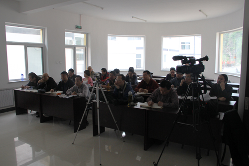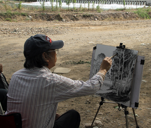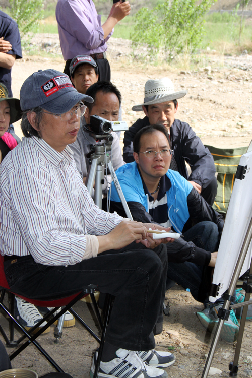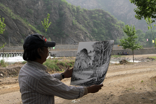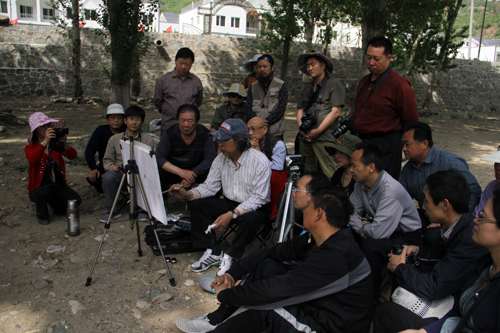 2013年5月13日上午,北京凤凰岭美术馆馆长兼龙瑞工作室山水课题班执行导师张培武在北京怀柔区琉璃镇白河乡村委会议室为学员们上写生课。
