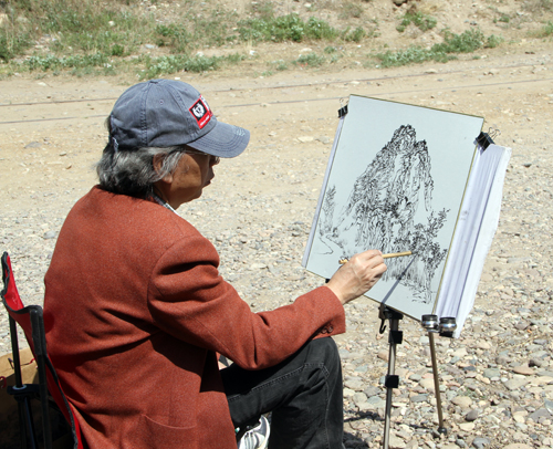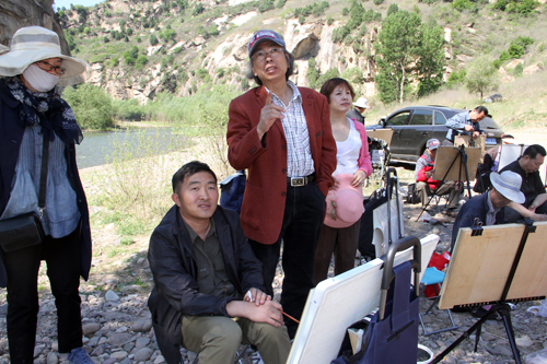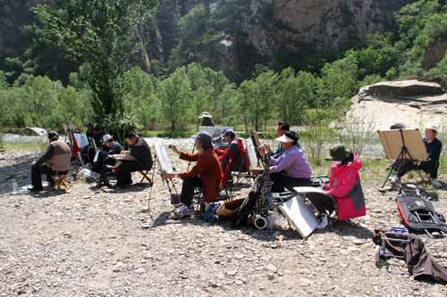 2013年5月14日上午,天气炎热,一条清澈的小河充满灵性的贯穿整座大山,同时带来了丝丝凉意。龙瑞工作室山水课题班‘走进自然、感受自然、体悟自然’的写生采风活动开始了。