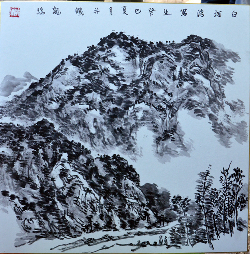 在学员们感动之余,又一令人振奋的消息从天而降。于6月3日北京凤凰岭美术馆兼龙瑞工作室山水课题班导师龙瑞先生从百忙中前来看望龙班的学员们,学员们在得知这一消息的前一天就连夜开始选地设计布置了一小型的展厅,并将近期写生创作的作品张贴悬挂起来,迎接龙瑞老师的检阅。