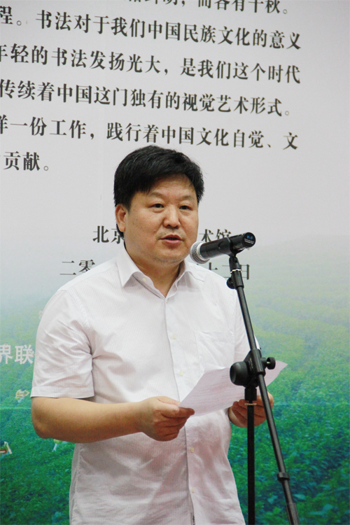 书法家代表宋国松发言:“中国是一座有着五千年历史文化的文明古国,书法是我们的国粹,也是我们民族的精神所在。中国书法在2009年列入联合国非物质文化遗产,非常令人欣喜。今天我们的书法作品在北京凤凰岭美术馆展出,请大家品鉴批评,多多指教。最后,再次感谢本次活动的主办方、承办方以及新闻媒体朋友和全体工作人员的辛勤劳动与付出。”