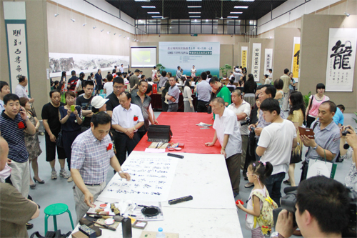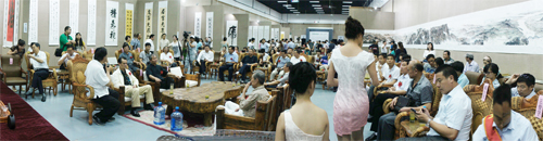 信阳龙渚春集团董事长张新华致辞:“闻名于世的茶艺与书法均起源于我们这个文明古国——中国。几千年来,随着社会的进步和发展,茶艺和书法得以兴旺发达,并形成了一脉悠久而独特的文化。茶被人们誉为‘国饮’,而书法又被世人视为‘国粹’。古人饮茶之风甚盛,有茶宴、茶会等一系列文化形式。文人墨客饮茶时,作诗作赋,挥毫吟颂,尽显风流。因此,我国历史悠久的茶文化与璀璨夺目的书法艺术历来就有着不解之缘。今天这个展览会正是这种“不解之缘”的延续与创新。”