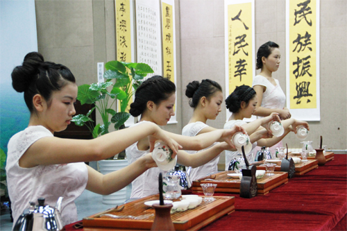 北京凤凰岭美术馆董事长张红军致辞道:“宋国松、吕书声两位书家通过不懈的努力,践行着中国文化自觉、文化自信,为推动中国文化大发展、大繁荣做出了自己的努力。中国茶文化糅合了中国儒、道、佛诸派思想,独成一体,是中国文化中的一朵奇葩,芬芳而甘醇。龙渚春高山茶是大自然的精华,今天请大家一道品鉴,并欣赏古色古香的茶艺表演,以茶行道,以茶雅志。”