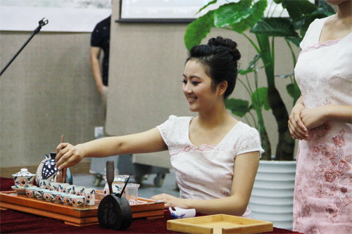 伴随着优美的《高山流水》古曲,龙渚春高山茶品鉴会拉开序幕。宾朋们于悠扬的琴声中,欣赏古色古香的茶艺表演,品鉴原汁原味的高山茶,畅谈书画艺术之道。