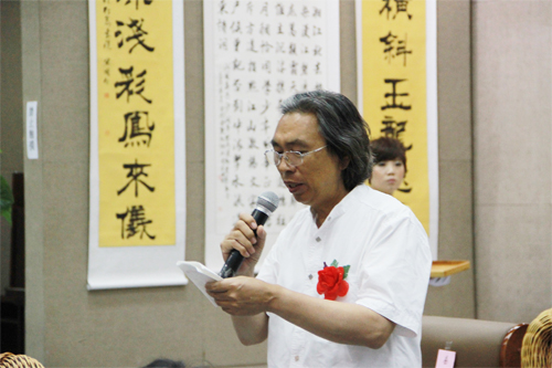 《共和国日记》编辑委员会秘书长武清月:“书法艺术是中华民族的国粹经典,也是华夏文明的体现。十八大以来,习近平主席阐释中华民族伟大复兴复兴的中国梦,梦想鼓舞人心,梦想凝聚力量,梦想照耀现实。我认为,继承和发扬中华民族国粹经典也是实现中国梦不可或缺的重要方面,是传承华夏文明的有效载体。今天,我们欣赏两位书法家的作品,之所以美感足,韵味浓,是他们多年的学养与阅历的支撑。展出的作品不但具有书卷气息,清新淡雅,而且大气磅礴,刚柔并济。另外还有香茗请大家享用,翰墨加茶香正是臻于妙境,赋予人们高雅之享受。”