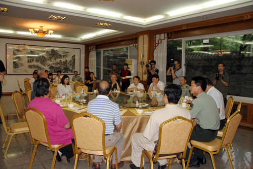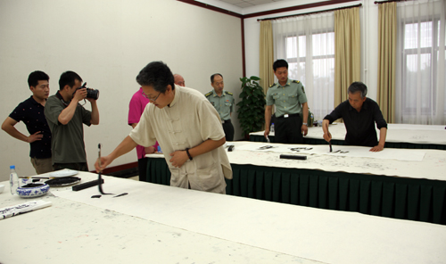 继2013年6月22日【茶禅一味·书禅一心】宋国松、吕书声书法作品展暨龙渚春高山茶品鉴会结束后,北京凤凰岭美术馆书法家在董事长张红军、馆长张培武、常务副馆长韩国栋带领下,与信阳龙渚春茶业公司的茶艺师走进二炮高中级干部培训中心,为部队带去了中国传统的书法文化与茶艺文化。