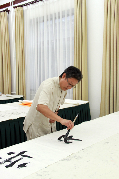 北京凤凰岭美术馆理论部主任褚哲伦展示书法笔墨