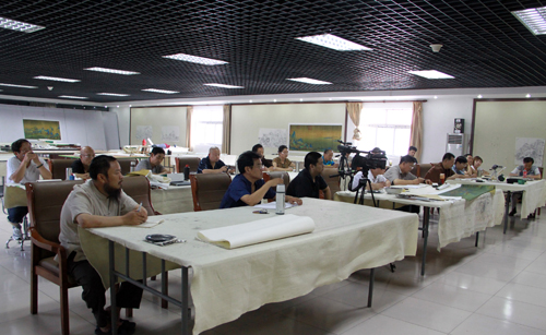 2013年6月27日上午,北京凤凰岭美术馆龙瑞工作室山水课题班执行导师张培武先生授课,首要强调了中国画创作的一些要点,并详细指导学员们中国画创作风格的研习方向。