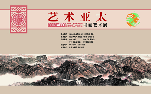 2013年7月13日上午,“艺术亚太”——2013年APEC工商领导人中国论坛书画艺术展在北京金隅喜来登酒店开幕。本次展览由APEC工商领导人中国论坛授权独家承办,展出作品20余幅,旨在探讨以艺术的方式进行文化沟通的可能性。
