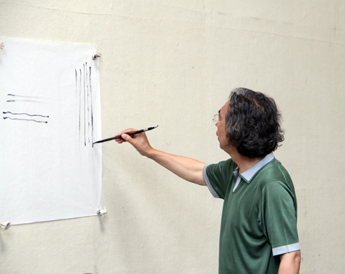 下午,张培武馆长不辞辛劳接着为学员们授课,主要讲解了临摹的重要性以及临摹的方法,并一再强调线条质量的重要性,同时亲自现场示范高质量的线条及树、石的画法,并以古代明贤的佳作为例讲解该如何去临摹。