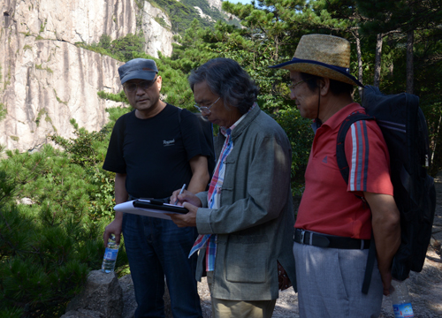 2013年9月16日上午,龙瑞山水画课题班一行在张培武老师的带领下,来到黄山著名景点狮子峰写生。狮子峰位于黄山风景区北海景区,这一带景点多而集中,清凉台、猴子观海是其最为著名的胜景。这里奇峰怪石林立,虬松满布使学员们大开眼界,尤其适合速写、写生,可以为今后山水画创作积累大量的天然素材。下午大家不辞辛劳徒步来到白云景区白云溪和步仙桥附近的谷口写生。这里群峰荟萃、阵列紧凑;峡谷深幽,诸峰环翠。张培武老师简单部署了一下,大家各自寻找题材开始写生绘画。部分学生观摩了张老师的写生示范。晚上在酒店张培武老师对这两天的写生情况做了一个总结和分析,他提出通过这次的黄山之行要对黄山有一些感悟,感受黄山的精神,特别强调要画好黄山的奇松、怪石和云。要把黄山作为今后山水画创作的一个课题来研究。