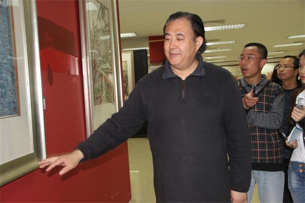 在展厅里,笔者采访了北京凤凰岭书院的华玉清学员,他说,韩馆长的指墨画很有味道,书画作品有味道不容易,味道是人生体验的积累和总结,他还从韩馆长的作品中看出了“静”,他说,“静”很难得,现在人的浮躁和太多杂念,这些行为形态都会在画中表现出来,所以,现在能画到韩馆长这种“静”之境界的人很少。最后,华玉清学员谈到了韩馆长画中的“无”,他指着韩馆长作品中留白的地方给笔者说,这些“无”的地方,不是“没有”,而是都可以看做是水,是物,是虚无,“虚无”是“道”的本体,谓道体虚无,故能包容生万物。