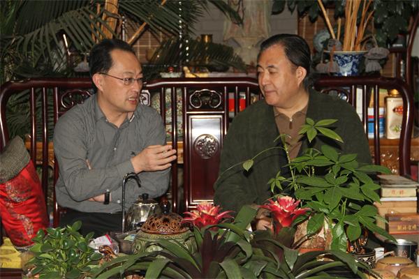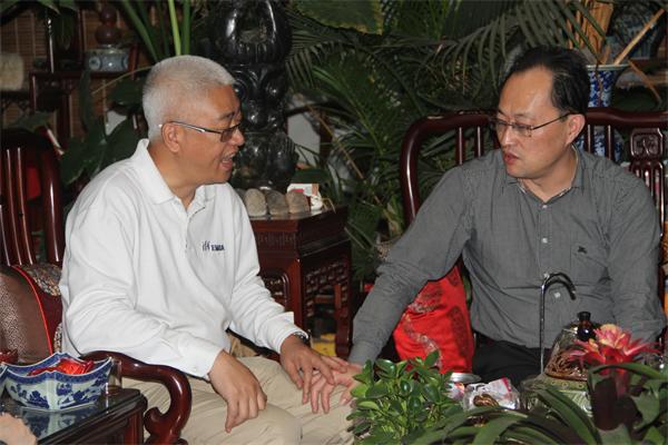 北京凤凰岭美术馆总经理谢森树与厦门商务局副局长兼会展局局长王琼文亲切交谈