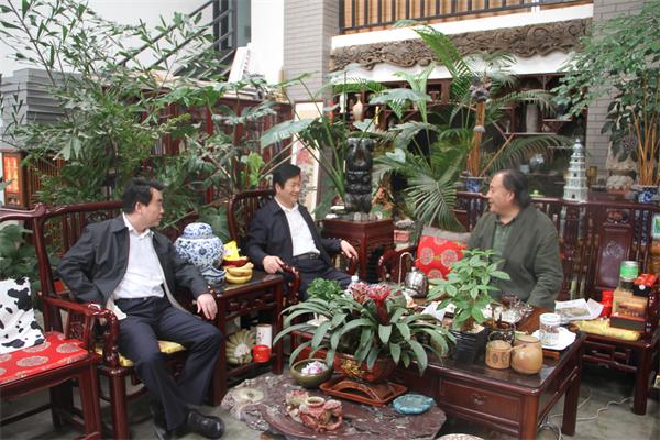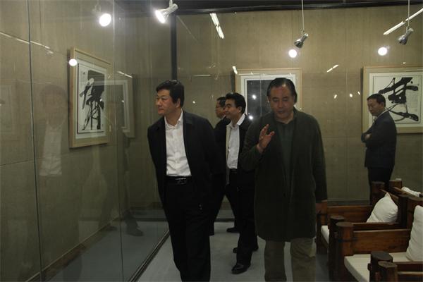 在参观过程中,张智全、汪海洲、黄登峰都对曾来德的书画作品给与了高度评价。参观完毕后,张智全、汪海洲、黄登峰一行到韩国栋工作室,进行了亲切座谈。