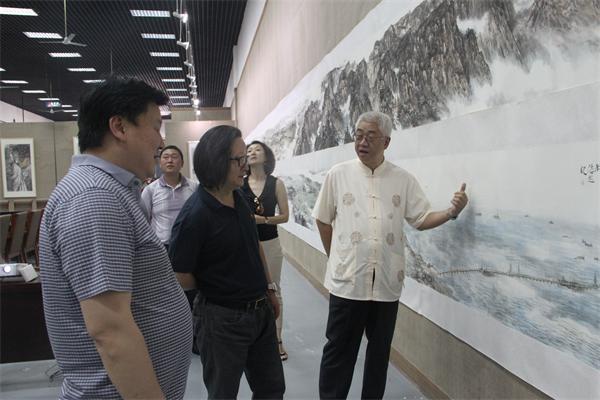 在展厅参观完毕后,张红军董事长、谢森树总经理引领夏蒙导演一行来到中国画参展作品创作高研班。在教室里,夏蒙导演和中国画参展作品创作高研班的学员们亲切交谈,共同探讨中国山水画的意境及题材。
