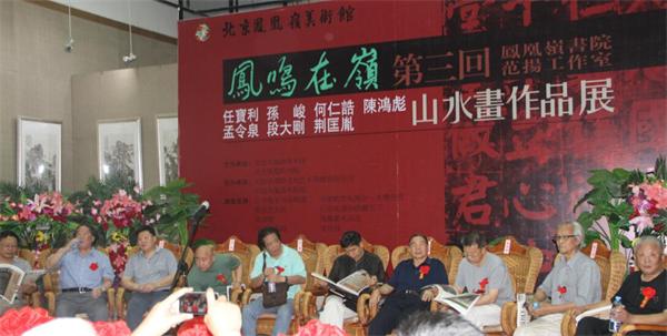 下午4时,凤凰岭美术馆内举行了【凤鸣在岭】第三回“任宝利 孙峻 何仁诰 陈鸿彪 孟令泉 段大刚 荆匡胤七人山水画展”研讨会,研讨会由北京凤凰岭美术馆馆长韩国栋主持,王鲁湘、范扬、何家安、刘龙庭、赵力忠等专家都纷纷发言。