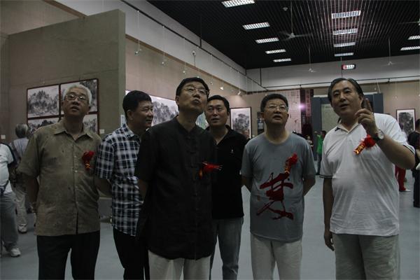 左起谢森树、曹建华、王鲁湘、陈家声、曾来德、韩国栋一起观看展览
