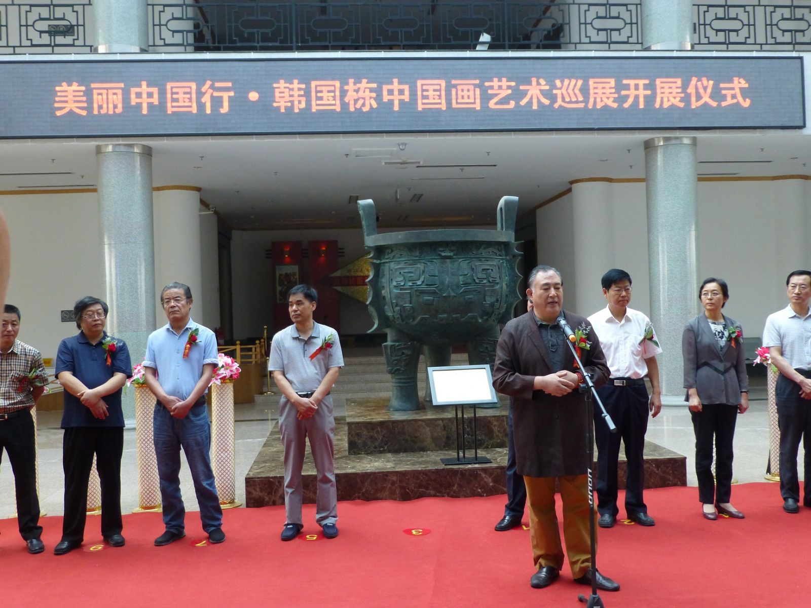 金秋送爽,丹桂飘香。美丽中国行——韩国栋中国画艺术展巡展中国画都·潍坊于2014年9月13日上午十时在潍坊市博物馆隆重举行。本次展览由潍坊市委宣传部、潍坊报业集团、潍坊市文化广电新闻出版局主办,北京润禾源投资管理公司、潍坊晚报传媒有限公司、潍坊北海书院、青岛龙鑫投资有限公司承办。共展出韩国栋指墨作品80余幅。