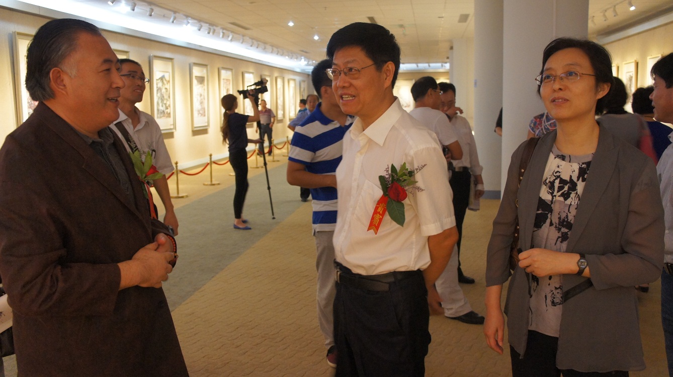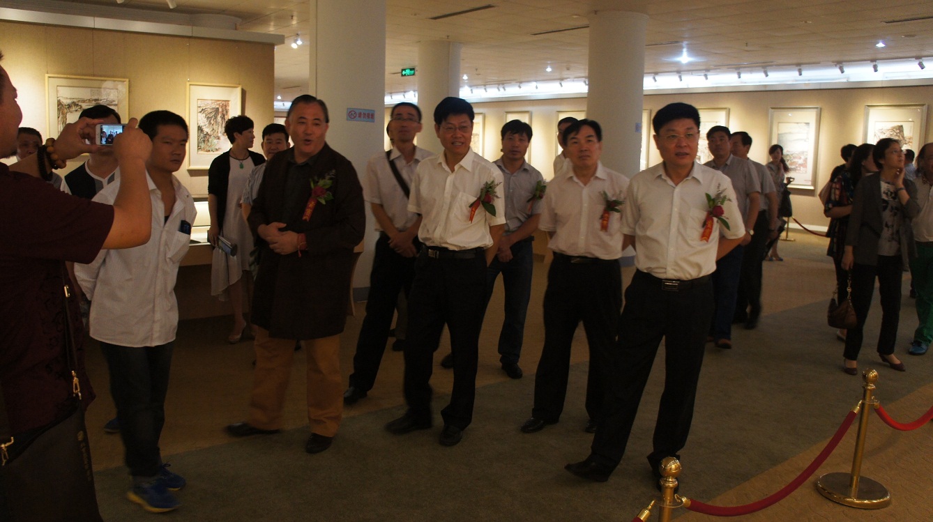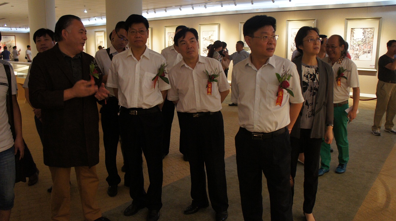 出席开幕式的领导与嘉宾有:大众报业集团副总经理来永生,潍坊市委宣传部常务副部长丁汉邦,潍坊市文化广电新闻出版局局长孙俐君,潍坊市文联副主席冯传增,潍坊市老龄委主任丁立民,潍坊市报业集团画院院长王居明,潍坊市美术家协会副主席、郭味蕖美术馆常务副馆长韩子夫,潍坊市美术家协会副主席吴彦华,潍坊市美术家协会副主席沈先成,潍坊学院美术学院副院长万修德,美国绿树创投有限公司董事长李伟,青岛龙富投资公司董事长李龙,北京润禾源投资管理公司董事长李姚,以及社会各界人士和嘉宾齐聚潍坊市博物馆参加此次活动,全国十多家主流新闻媒体聚焦此次展览。