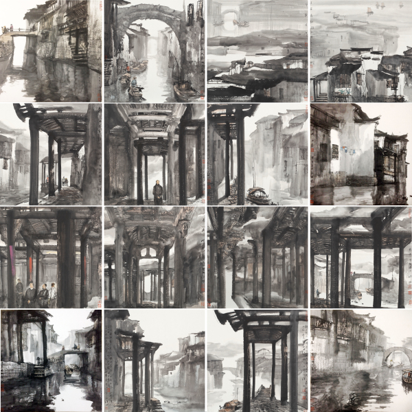 第十二届全国美展中国画展区入选作品《水乡遗韵》200CM×200CM